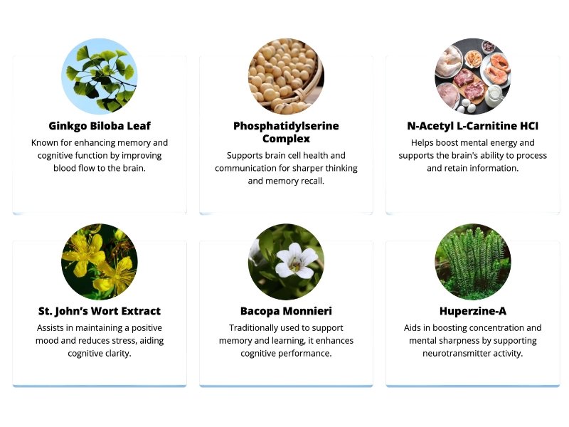 ✅ Key ingredients like Ginkgo Biloba and Bacopa Monnieri boost blood flow to the brain and enhance neural communication.